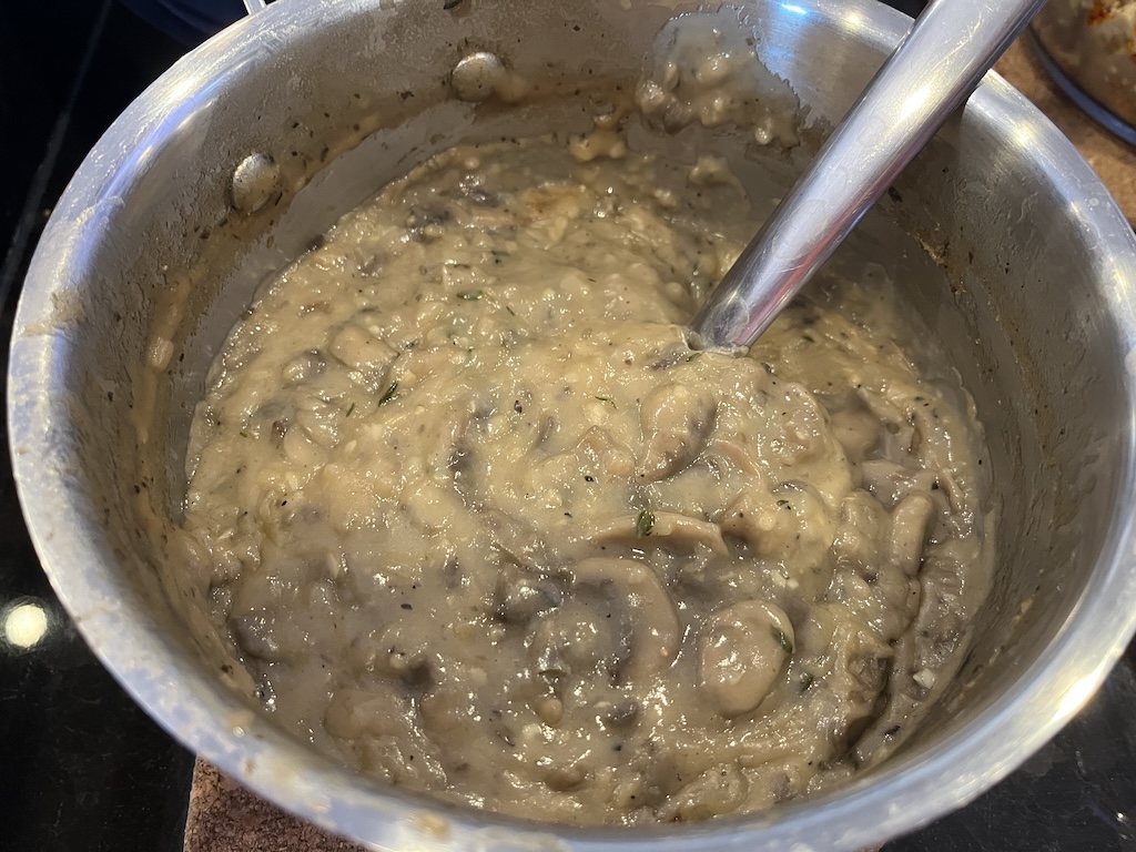 Mashed potato and mushroom gravy provided by the noble and only, Ed Kwon. This is a vegetarian dish.
