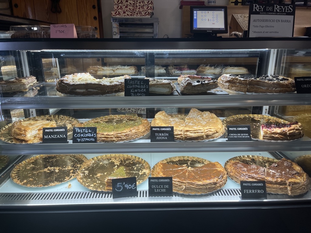 Delicious pastries from Rey de Reyes - Pastel Cordobes Artesano. Must get! They only accept cash (β¬5.90 per slice). It's located here.