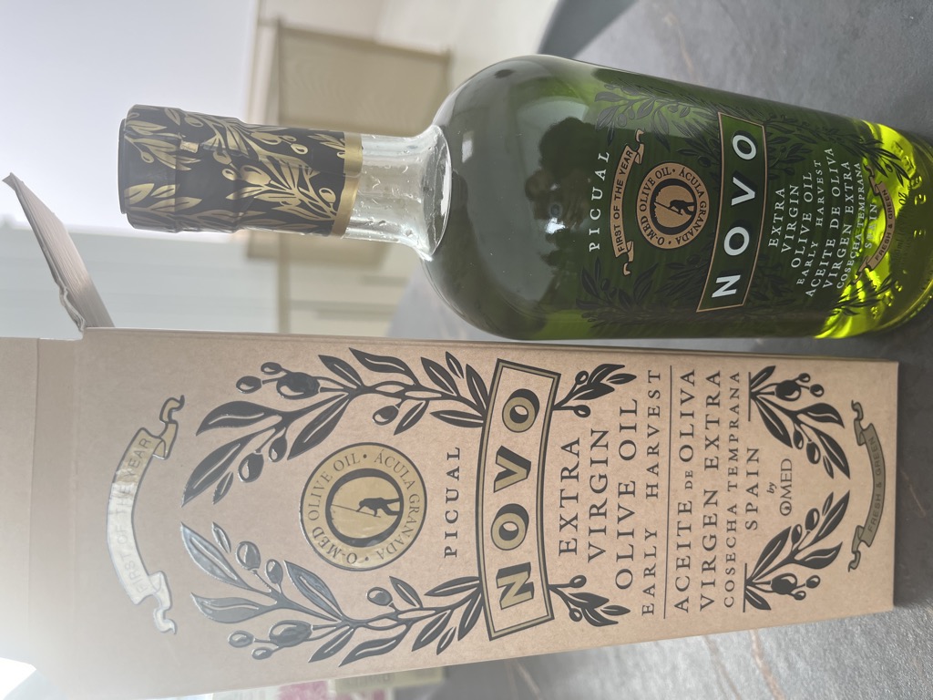 - 3x 500ML of Novo - This is the very first harvest and first day of the season for the harvest of the Picual oil. It's the highest quality olive oil, greener than the usual Picual oil and more buttery. It's much more floral and stronger taste than the Picual oil.